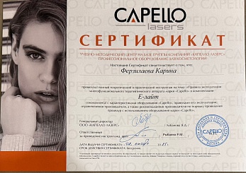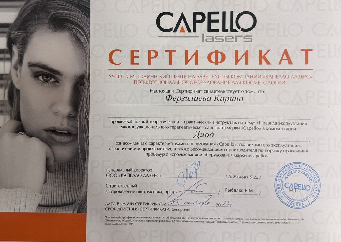 2025 г. - повышение квалификации на диодном лазере Capello, УМЦ Capello Lasers