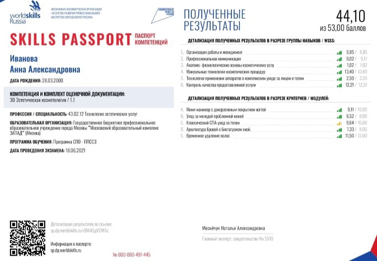 2021 г. - участие в конкурсе профессионального мастерства World skills в категории «Эстетическая косметология»