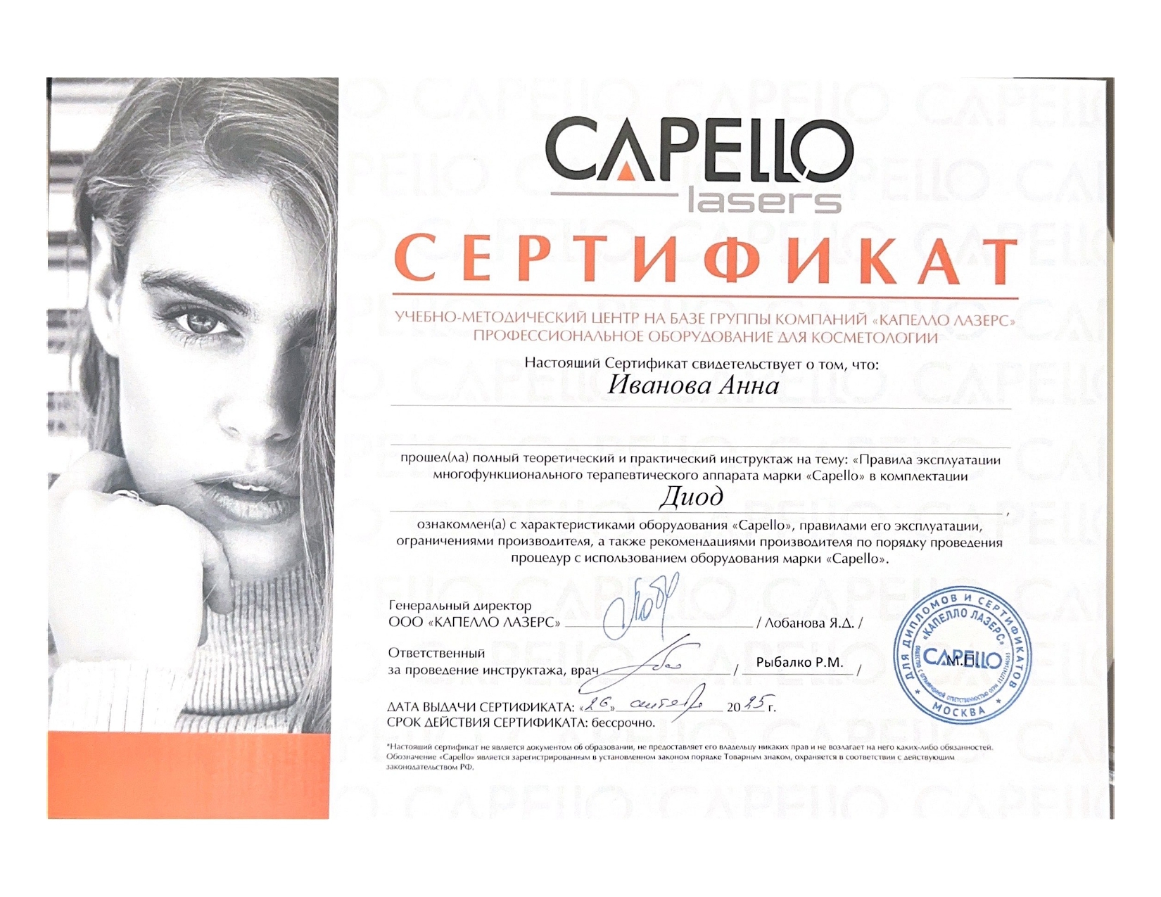 2025 г. - обучение на диодном лазере Capello, УМЦ Capello Lasers