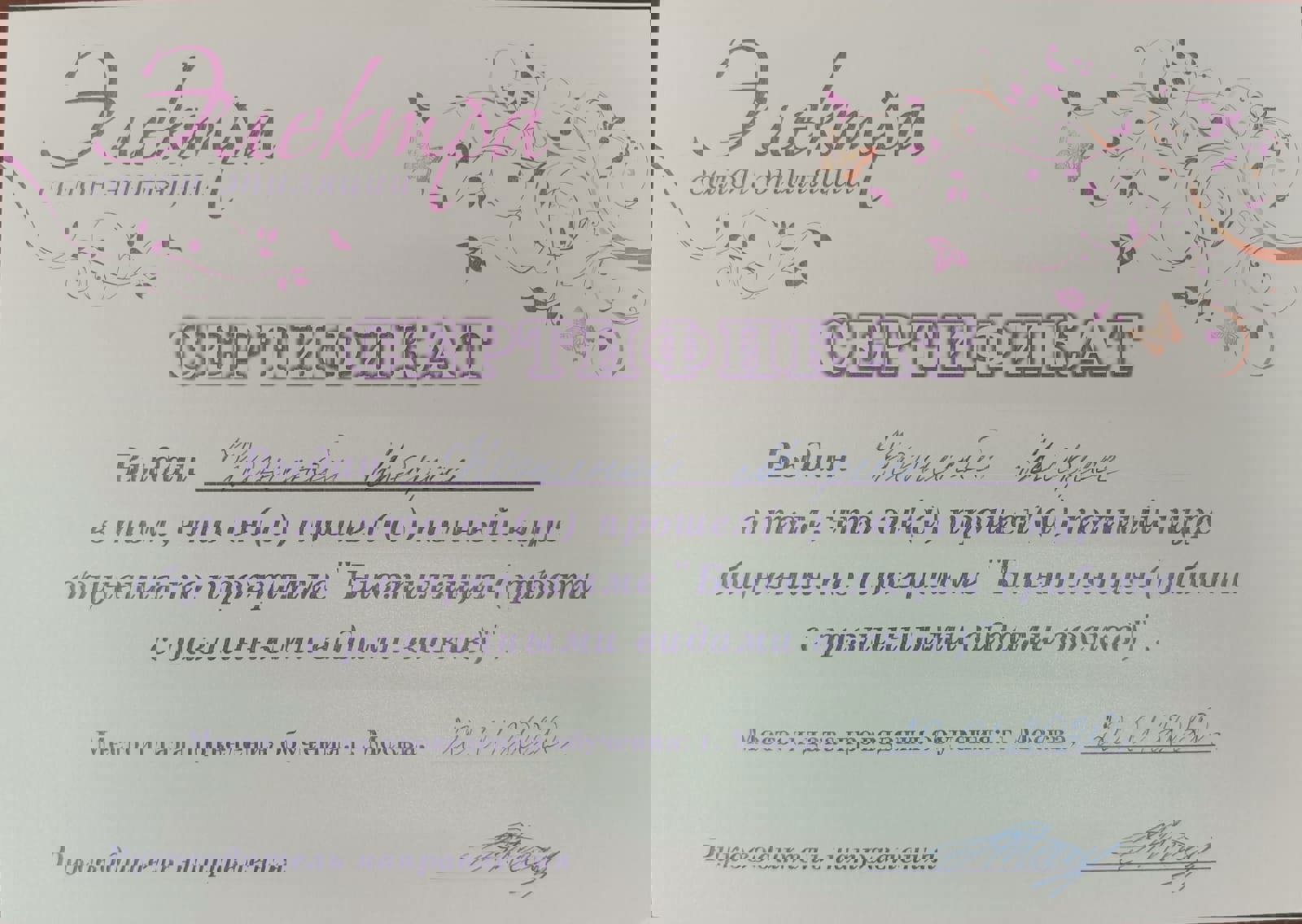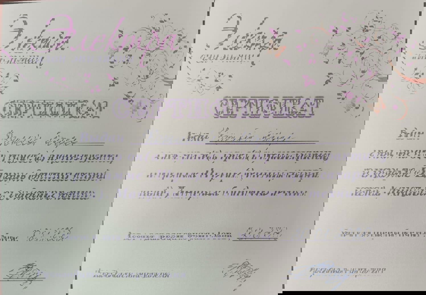 2020 г. - прошла обучение на мастера восковой депиляции в салоне эпиляции Электра