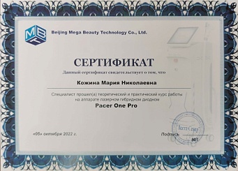 2022 г. - прошла обучение лазерной эпиляции, ООО "Веста-Север"