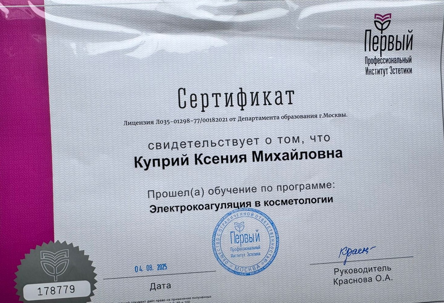 2025 г. - повышение квалификации по программе «Косметология», ООО "Учебный центр непрерывного образования"