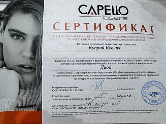2025 г. – повышение квалификации на диодном лазере Capello, УМЦ Capello Lasers