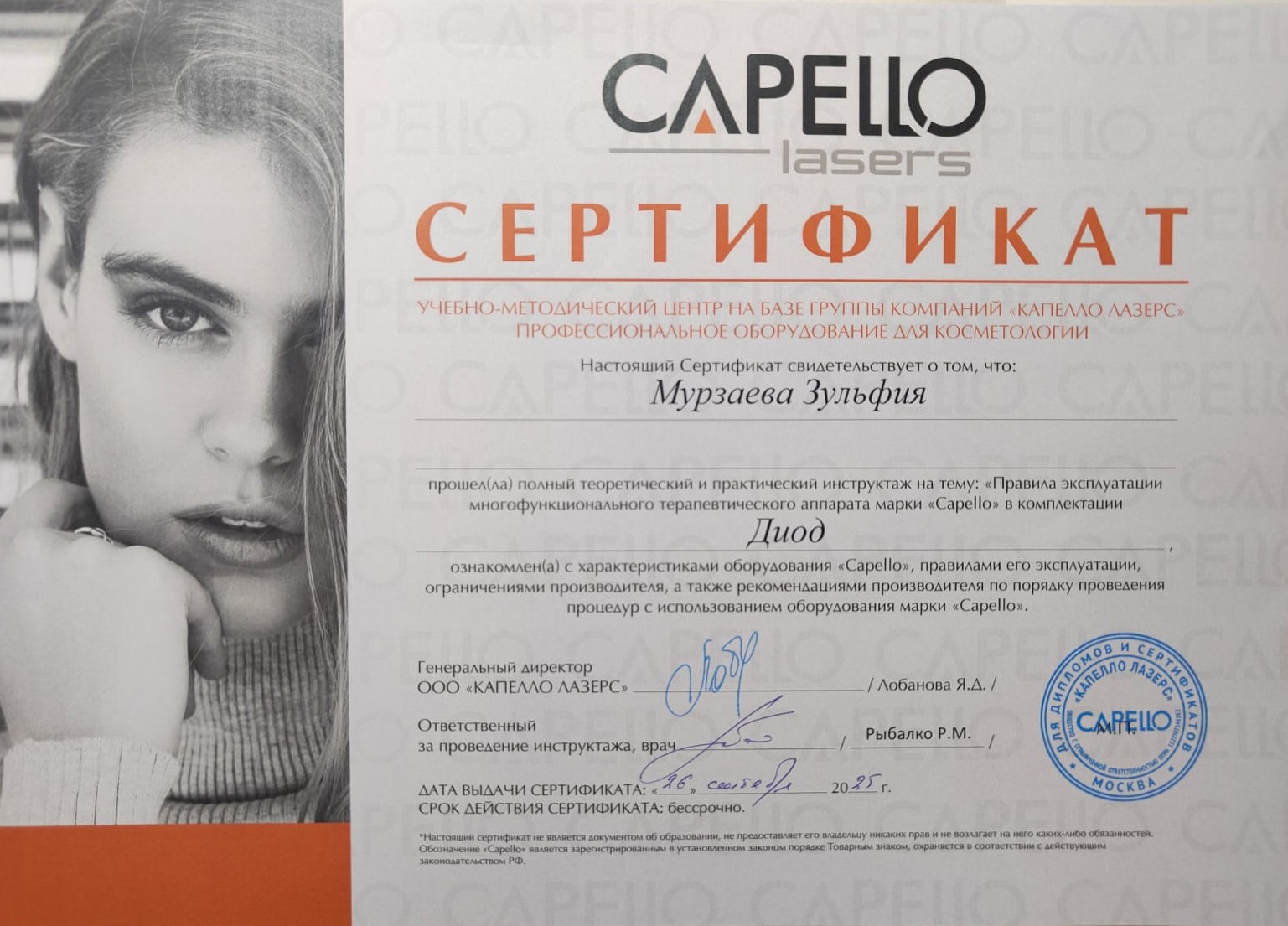 2025 г. – обучение на диодном лазере Capello, УМЦ Capello Lasers