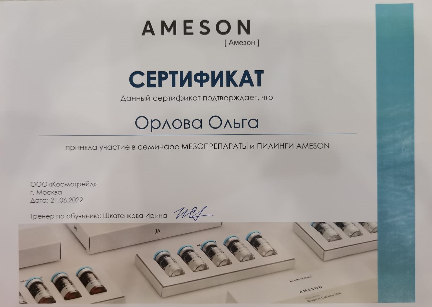 2021 г. - курс «Ультразвуковые методы в аппаратной косметологии: чистка и фонофорез» в Учебном центре ARAVIA