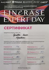 2024 г. - участие в научной конференции по коллагенотерапии для врачей-косметологов Linerase Expert Day