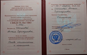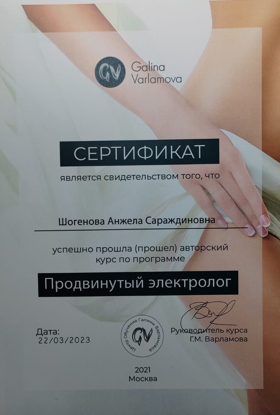 - Электроэпиляция, специалист III (высшей) категории.